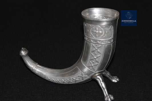 NORWEGEN TRINKHORN AUS ZINN, WIKINGER MOTIV, VON AKSEL HOLMSEN, 1920ER